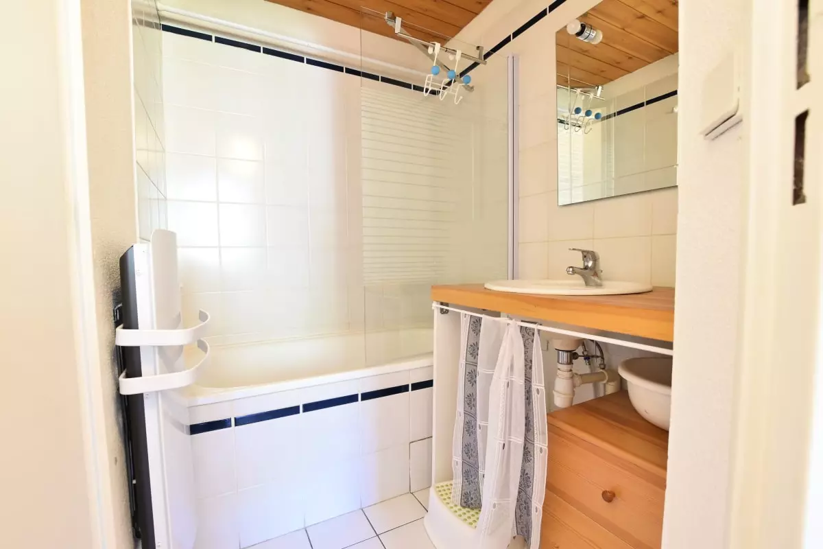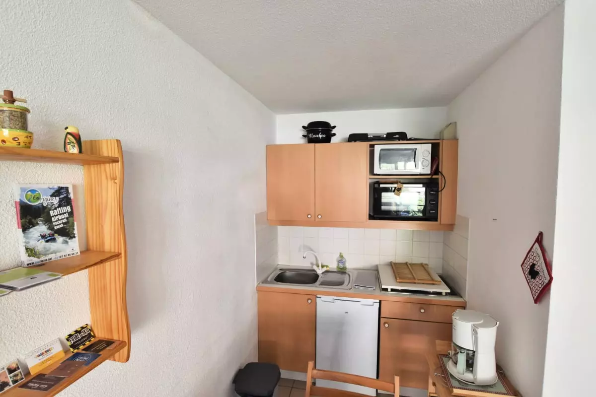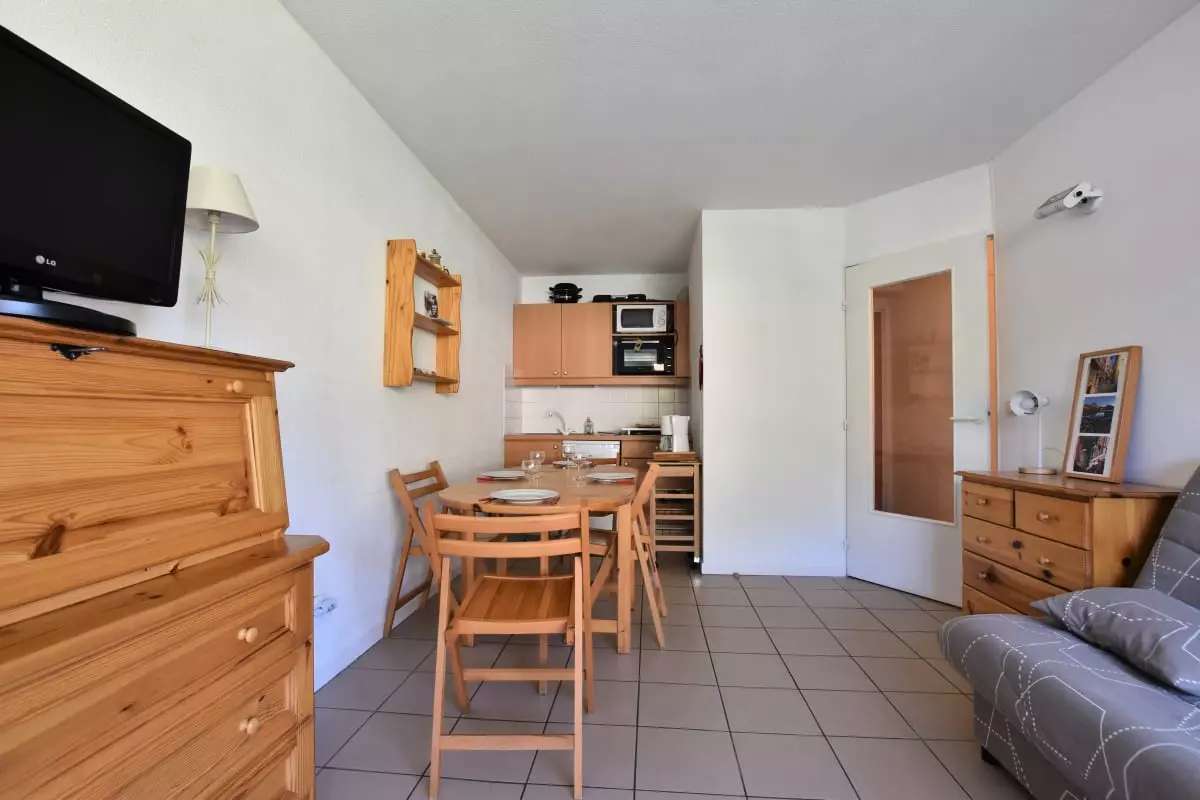 Parfait pour 4 personnes, cet appartement comprend une chambre confortable, un salon avec canapé convertible et une cuisine entièrement équipée. Vous y trouverez tout le nécessaire pour préparer de délicieux repas : four, micro-ondes, grille-pain, bouilloire et même un appareil à raclette pour vos soirées gourmandes. Une machine à café est également à votre disposition pour bien commencer la journée. Profitez de la télévision pour vos moments de détente après une journée riche en activités.