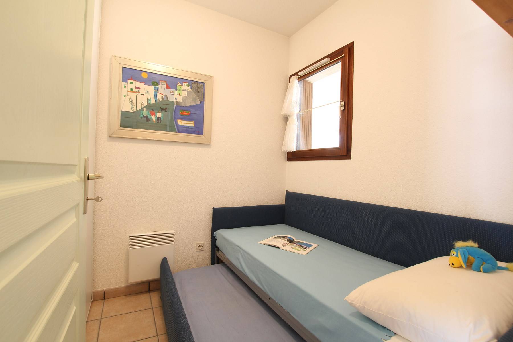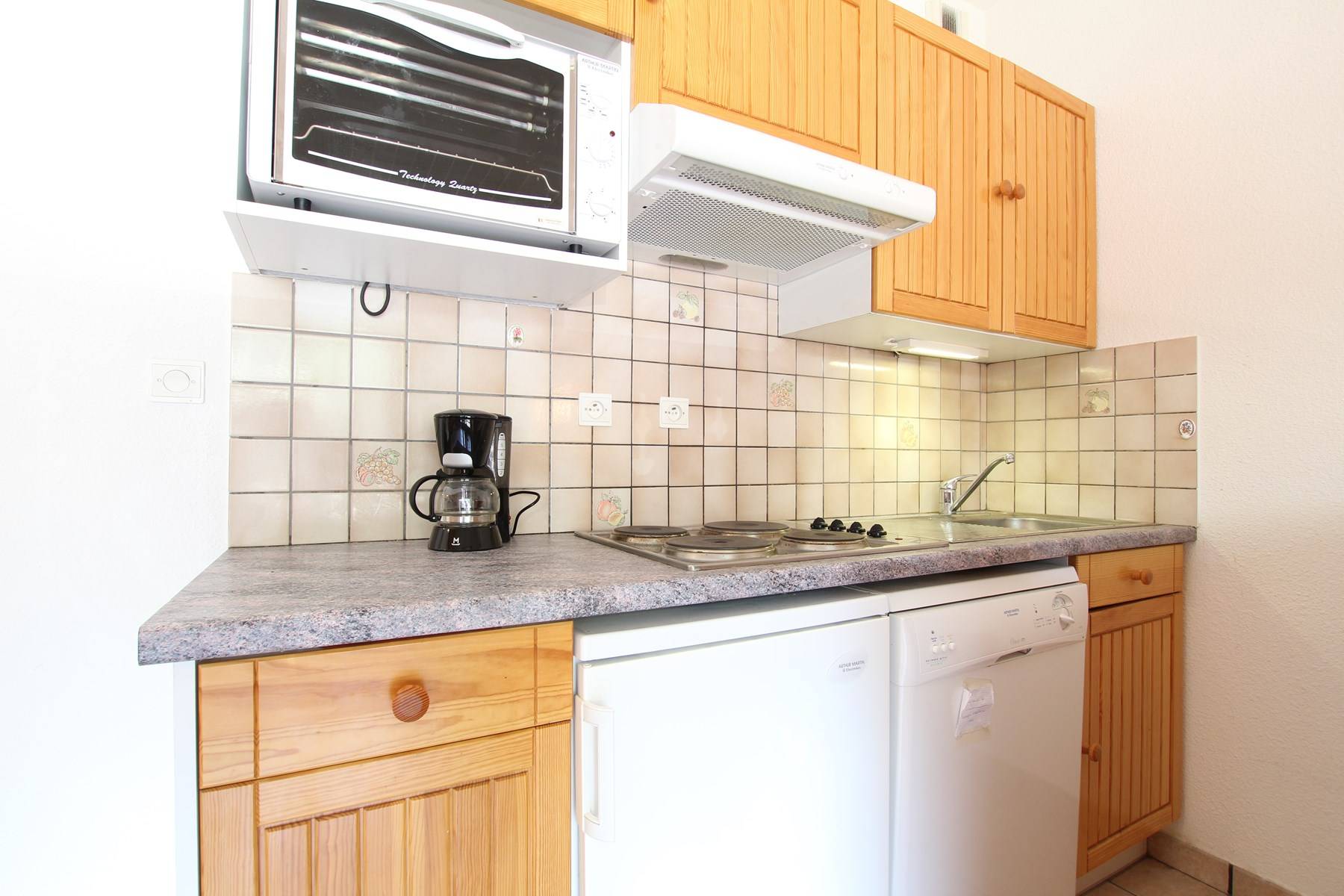 L'agencement du logement s'organise de la manière suivante : une première chambre avec lit double et salle d'eau attenante, une deuxième chambre avec lit simple, un coin montagne avec banquette lit, un séjour avec canapé convertible pour deux personnes, un coin cuisine équipée (lave-vaisselle, plaques électriques, four, réfrigérateur,...) et ouvert sur le séjour, une salle d'eau avec wc en plus d'un wc indépendant.