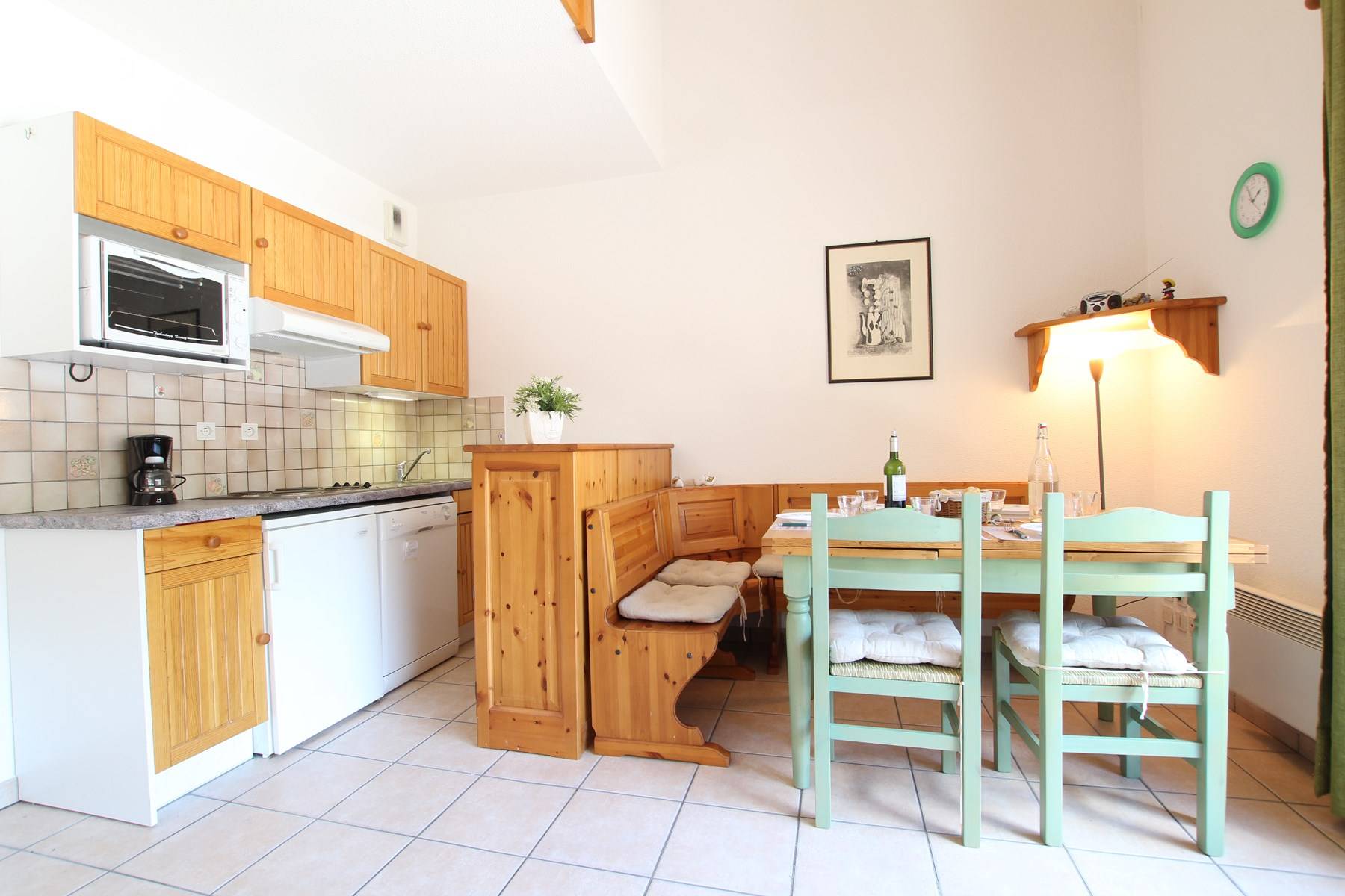 Appartement 3 pièces en duplex - 50m² - jusqu'à 7 personnes La copropriété Hameau du Bez est une résidence de quatre bâtiments indépendants, située en centre de station, à environ 200 mètres du départ des pistes et à proximité du centre commercial et de la piscine.