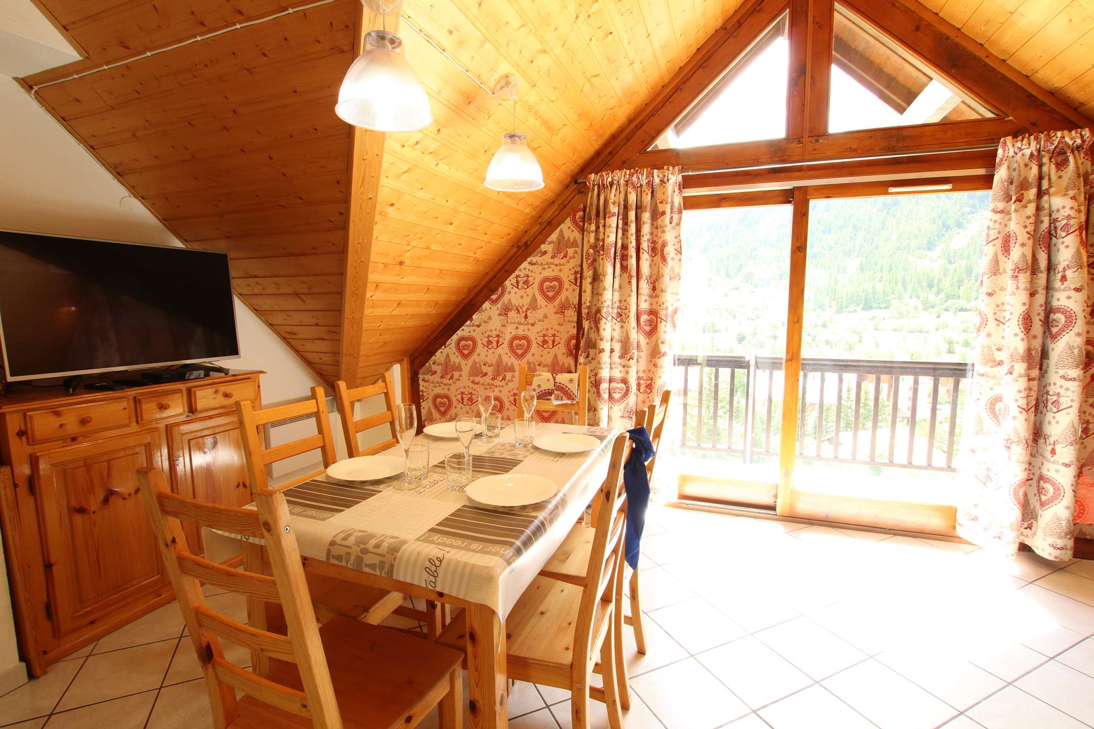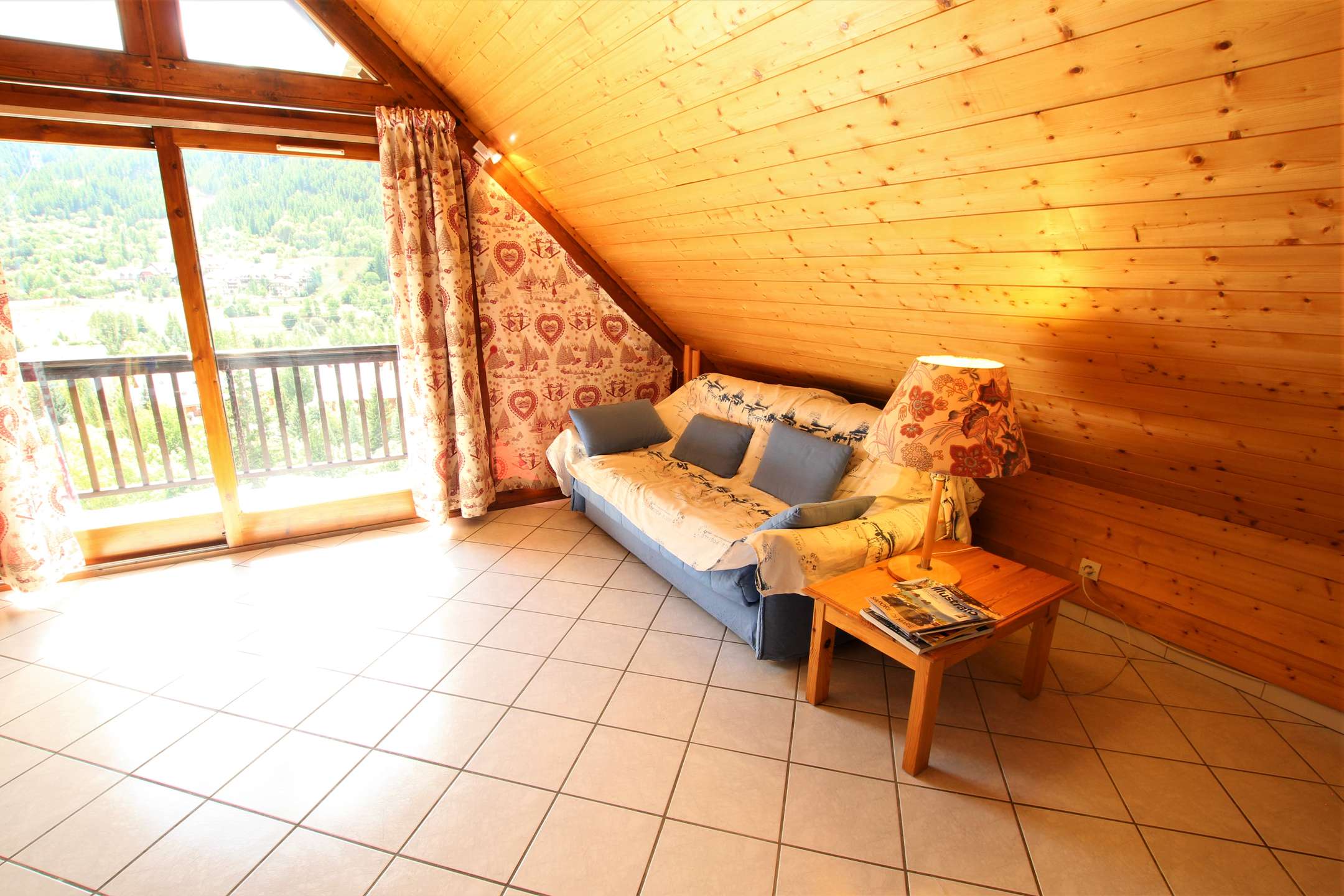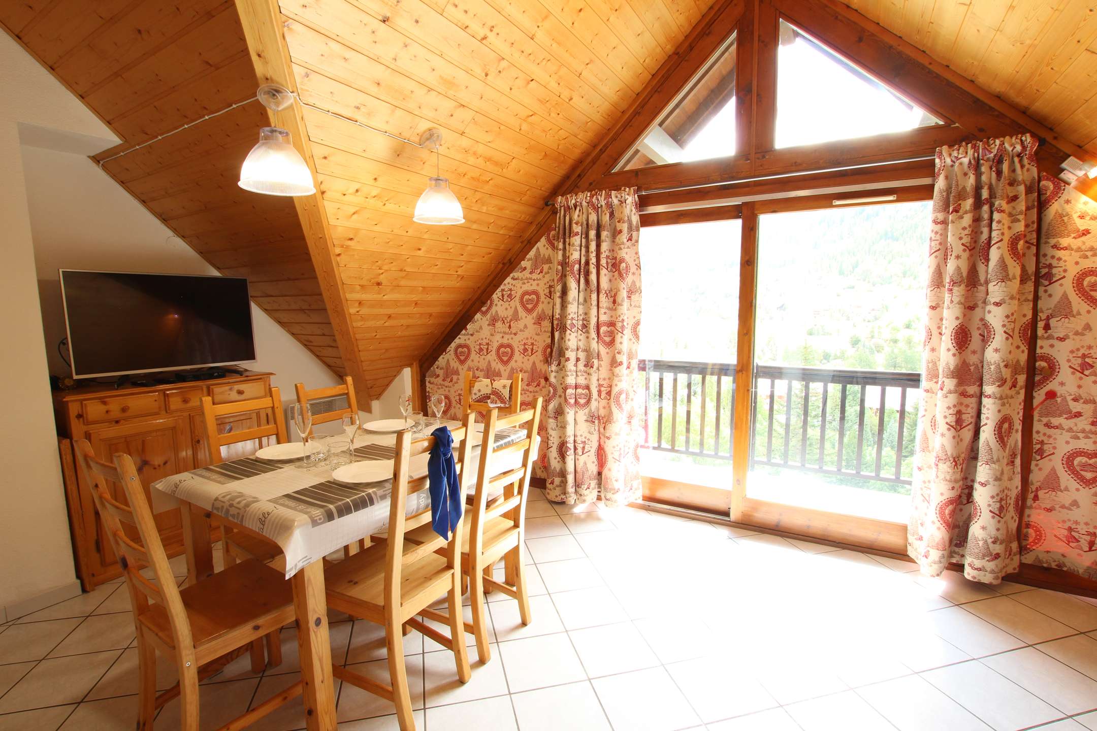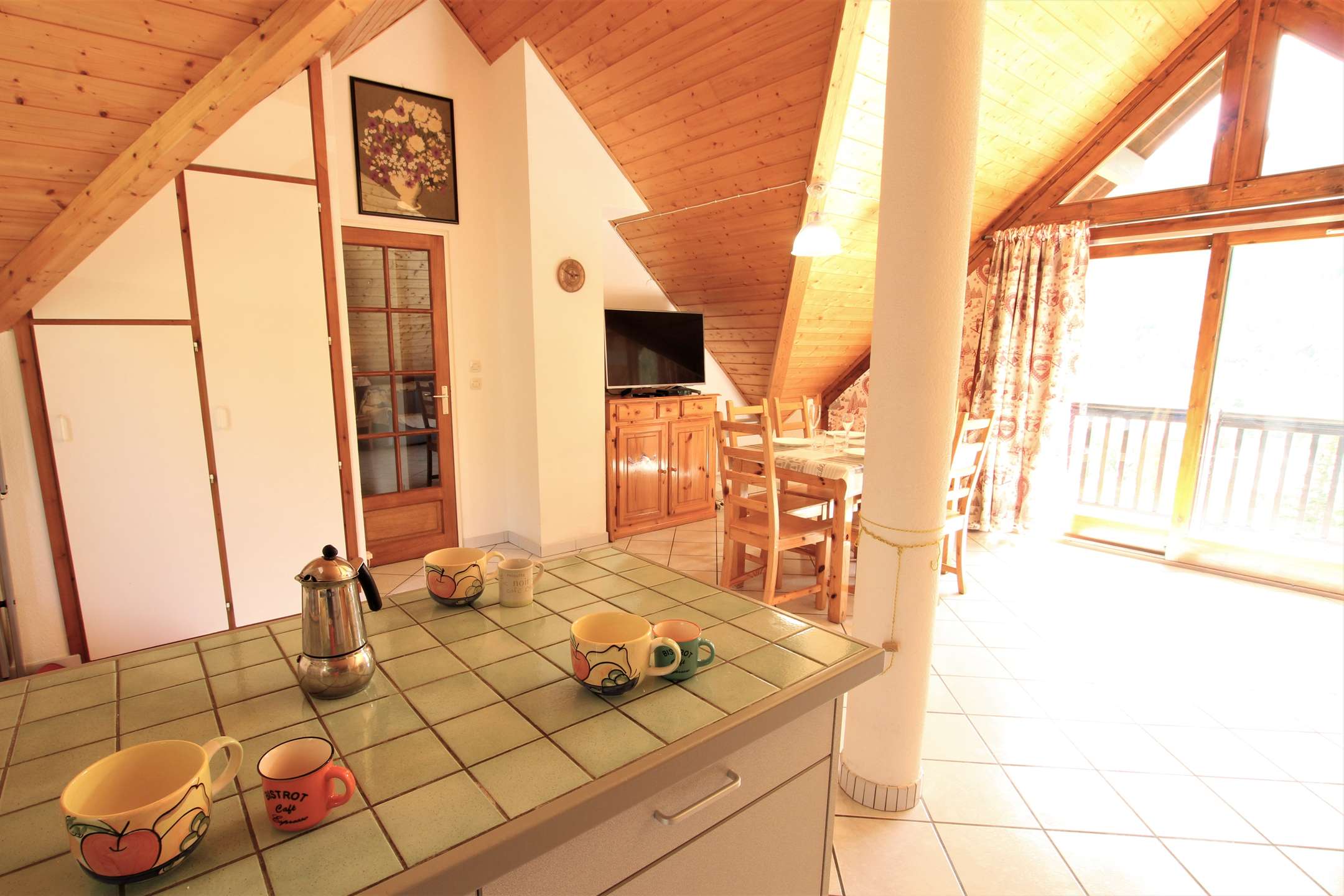 Cet appartement 3 pièces à la montagne 3 ème et dernier étage sans ascenseur de la résidence l'Ancolie, dispose d'une chambre avec lit double en 140 et une chambre avec 1 lit double et 1 lit simple. Le séjour est équipé d'un canapé-lit BZ et d'une télévision. Le coin cuisine comprend un lave-vaisselle, une lave-linge, 4 plaques vitro céramique, four et un micro-ondes. La salle de bain et les WC sont indépendants.